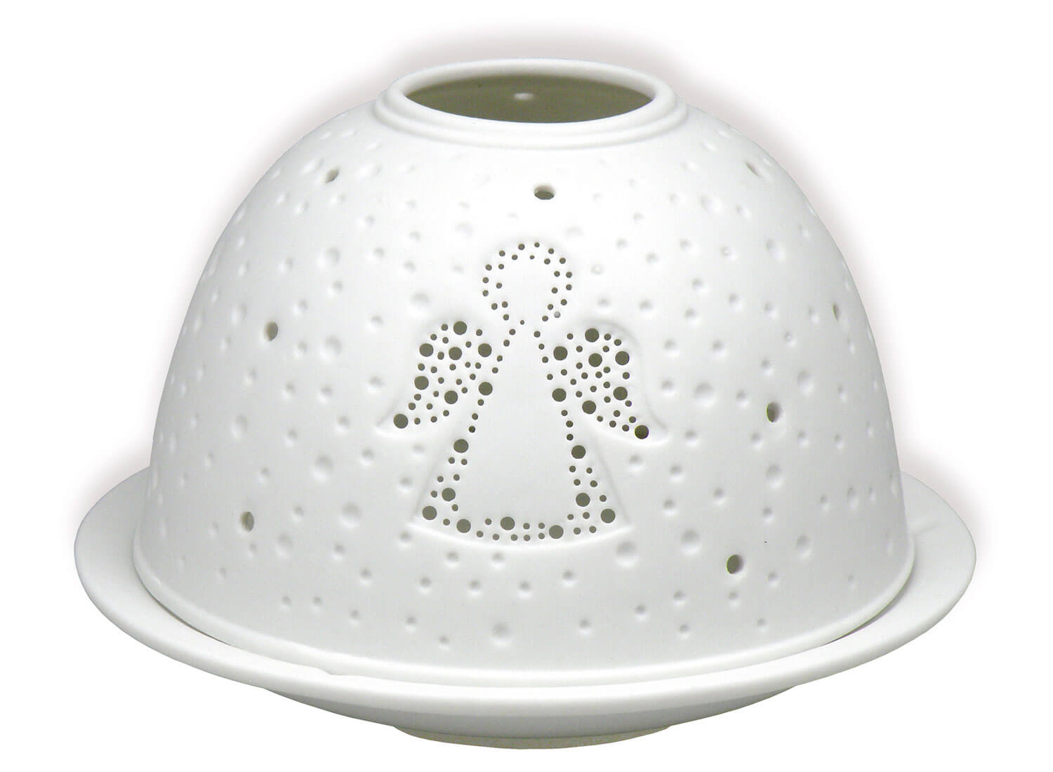 Windlicht aus Porzellan, mit Ausstanzung Engelmotiv, ca. 12 x 8 cm