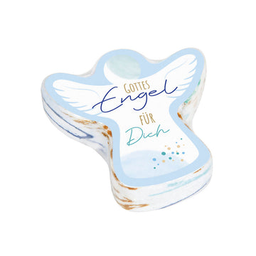 Kleines Handtuch in Engelform gepresst und verpackt, mit Text-Einleger: Gottes Engel für Dich.