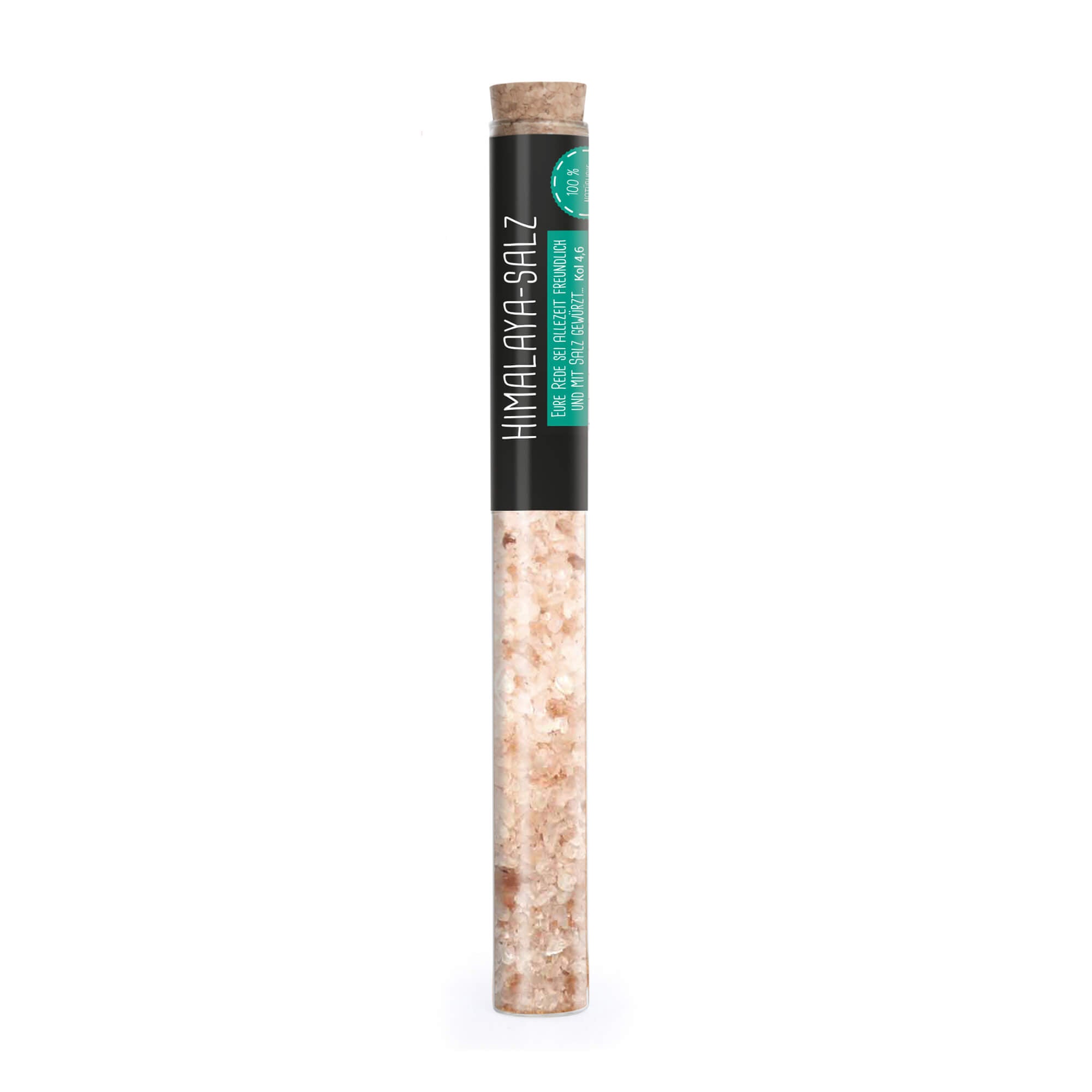 Inhalt: 40g Himalaya-Salz im Glaszylinder aus recyceltem Glas mit Korkstopfen