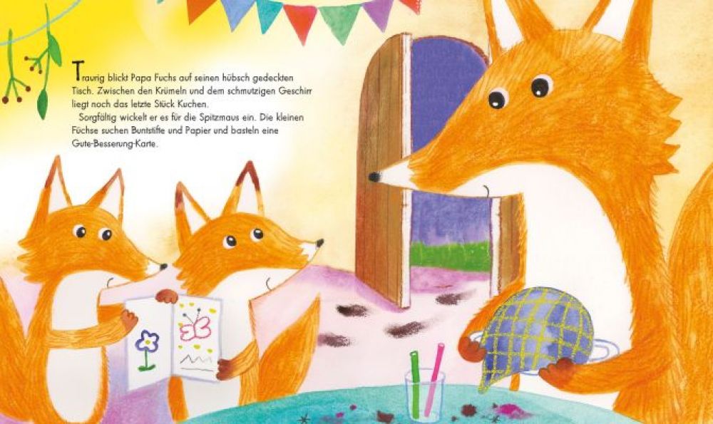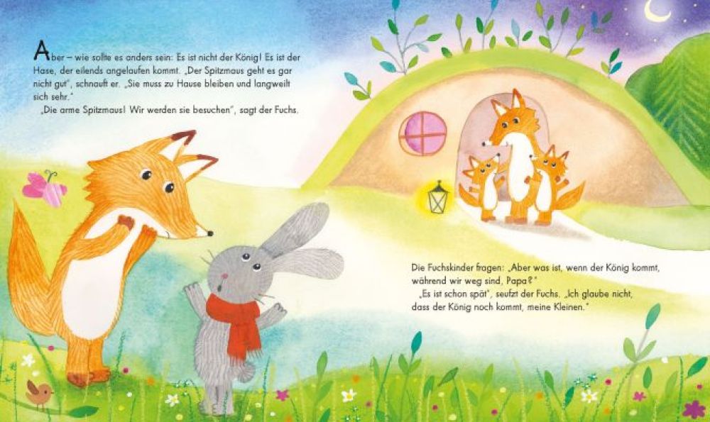 Der König des Waldes hat seinen Besuch angekündigt. Der Fuchs und seine Kinder sind schon sehr aufgeregt. Ein tolles Essen haben sie für den König vorbereitet. Doch nach und nach klopfen Freunde in Not an ihre Tür und der Fuchs verteilt alles was er hat. Was können sie jetzt noch dem König geben?