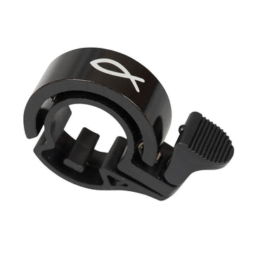 Auf jeder Tour dabei: Stylische Fahrradklingel in schwarz mit Lasergravur Fischsymbol.