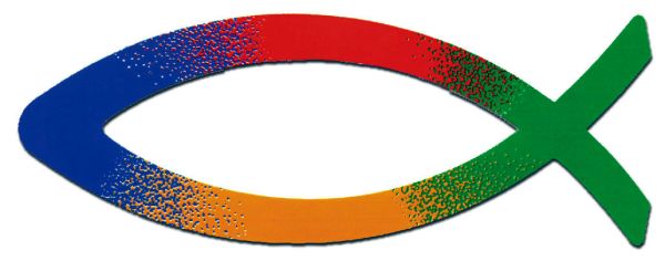 Fisch grün/blau/gelb/rot - Aufkleber 14 x 7 cm
