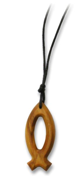 aus Olivenholz am braunen Band, Fisch ca. 35 mm groß