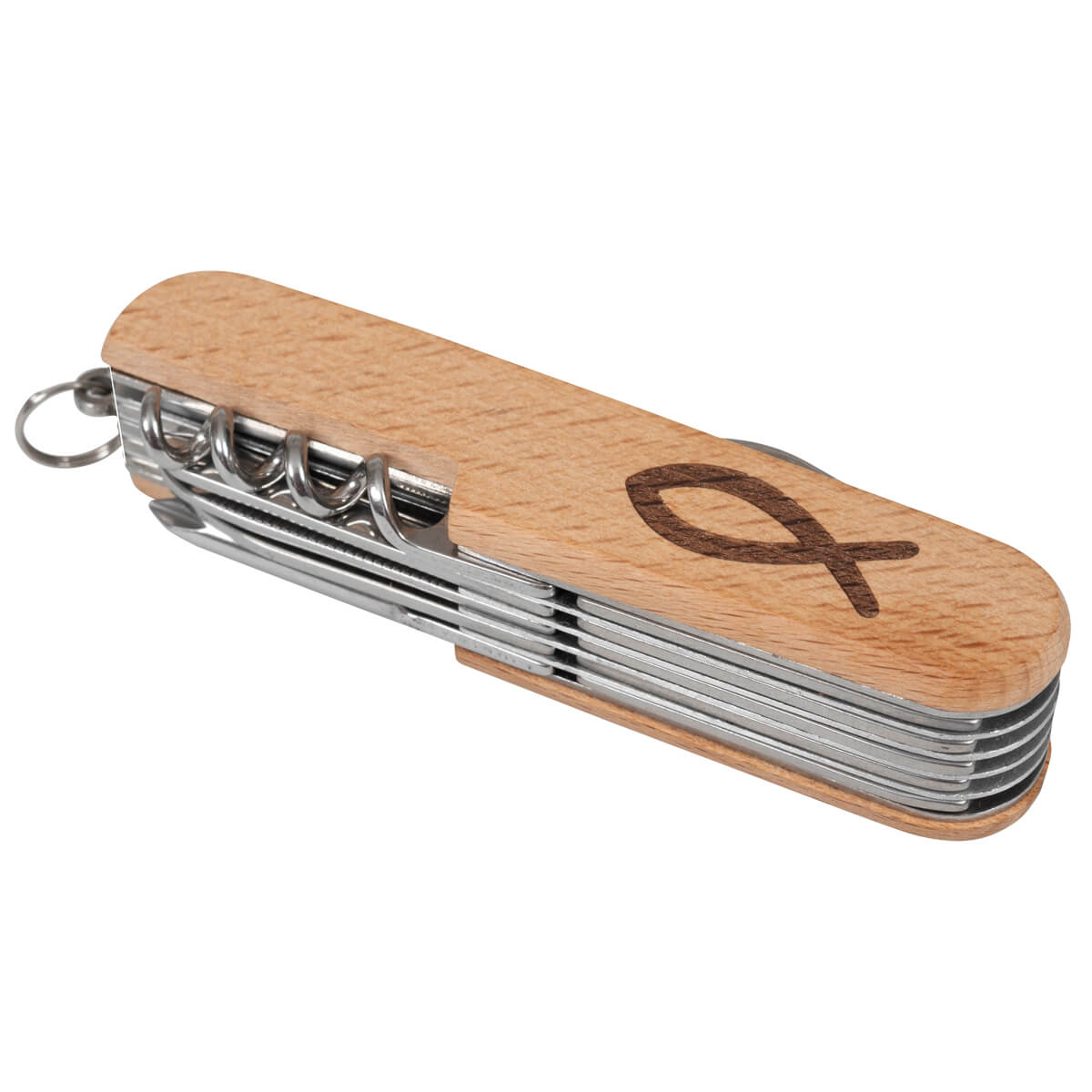 Taschenmesser mit Fisch-Symbol, eine super Geschenkidee für alle, die gerne in der Natur sind.