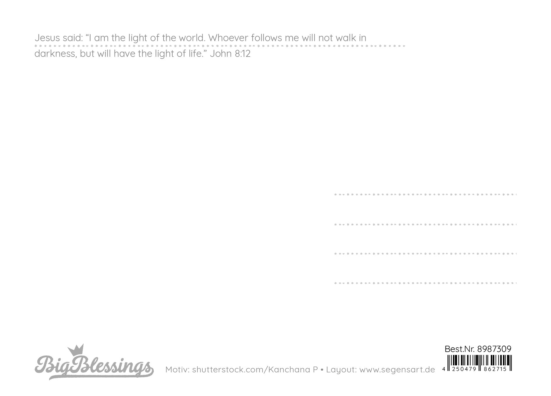 Jesus said: "I am the light of the world. Whoever follows me will not walk in darkness, but will have the light of life."