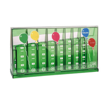 In der farbenfrohen Spardose sind Euro-Münzen nicht nur sicher untergebracht, sondern lassen sich auch sortieren und zählen. Einmal Geld eingeworfen, rollen die Münzen automatisch in das richtige Fach. Für bis zu 118,20 Euro ist in der Dose Platz. Welcher Münzwert sich in dem Geldsortierer befindet, lässt sich so auf den ersten Blick ablesen. In die abschließbare Spardose passen auch Scheine hinein. Dazu verfügt diese über ein kleines Fach für 5 bzw. 10-Scheine am Rand.
