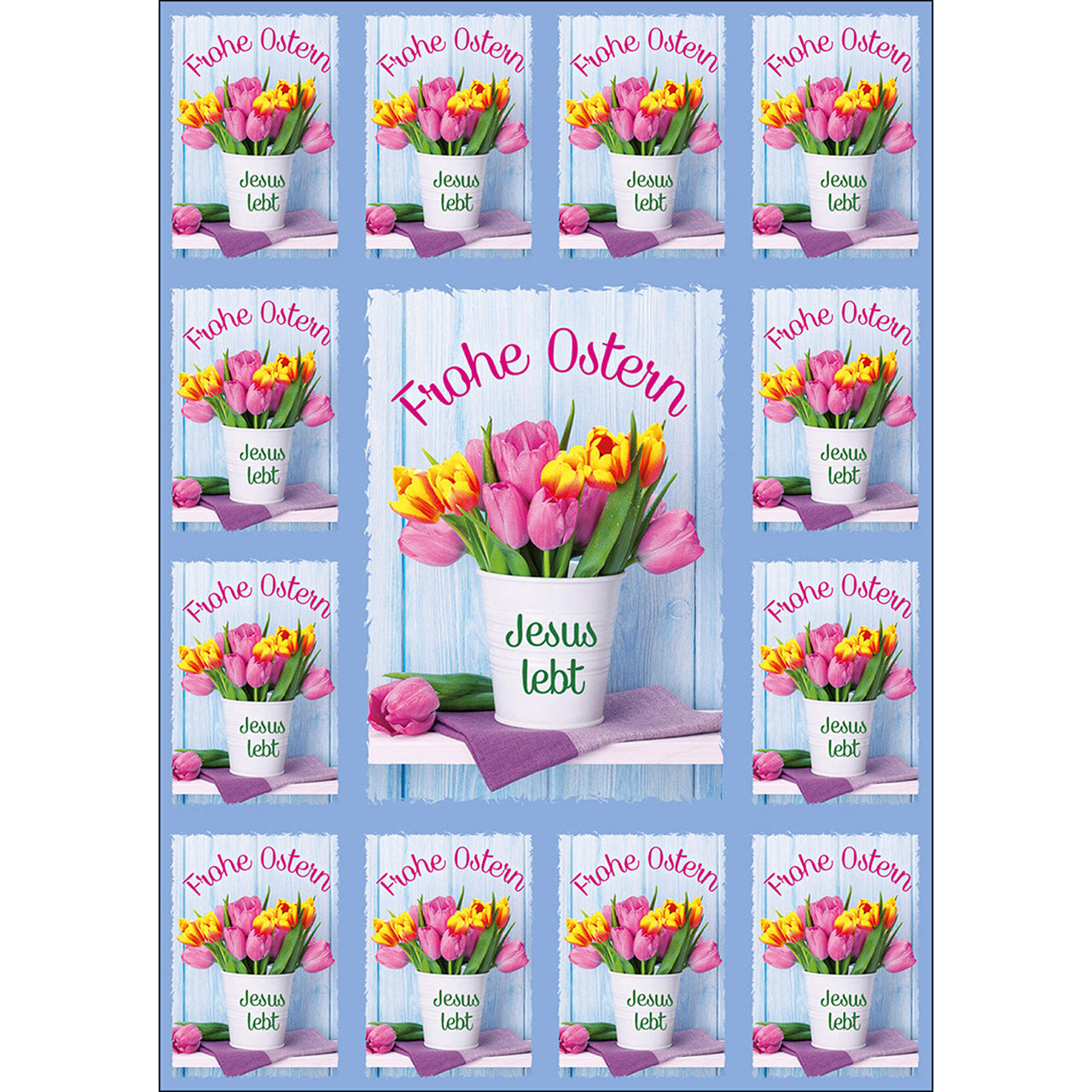 Frohe Ostern - Jesus lebt (12 Aufkleber-Grußkarten)