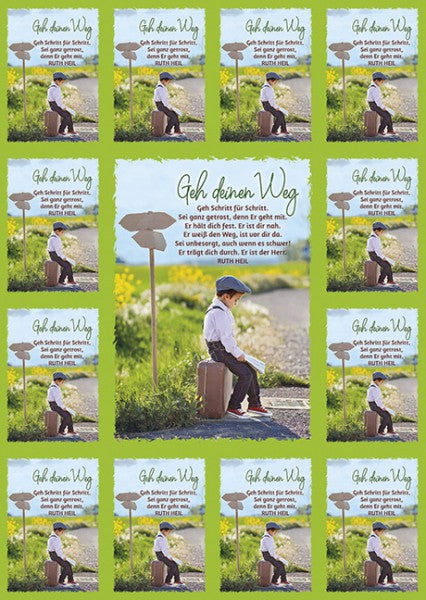 Serie mit 12 gleichen Aufkleber-Grußkarten.