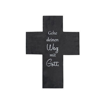 Massives Schiefer Kreuz mit Text: Gehe deinen Weg mit Gott.