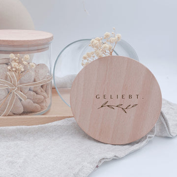 Unser hochwertiges Glas mit spülmaschinenfester Qualität und einem massiven Holzdeckel aus warmer Buche bringt nicht nur Ordnung in den Alltag, sondern auch geistliche Tiefe. Die feine Gravur "geliebt" macht es zu einem besonderen Geschenk voller Ermutigung, Liebe und Segen - ideal zur Hochzeit, Taufe oder als liebevolle Aufmerksamkeit für Menschen, die einem am Herzen liegen.
