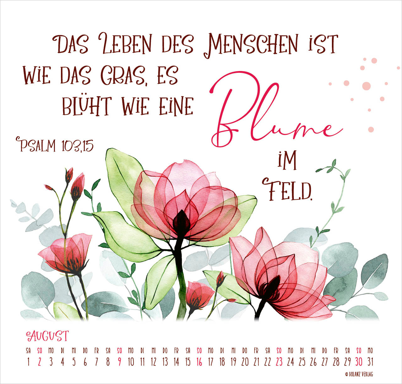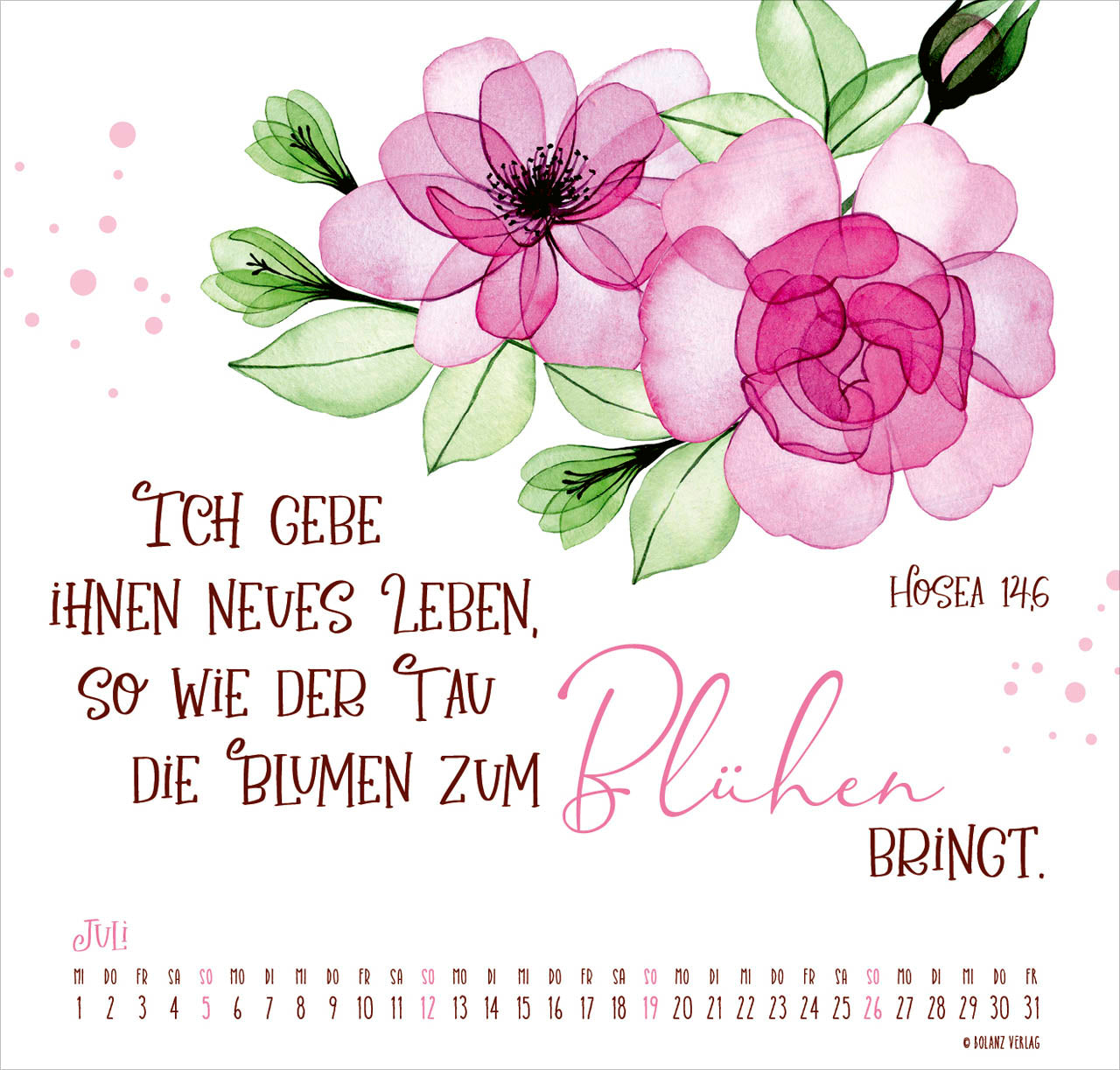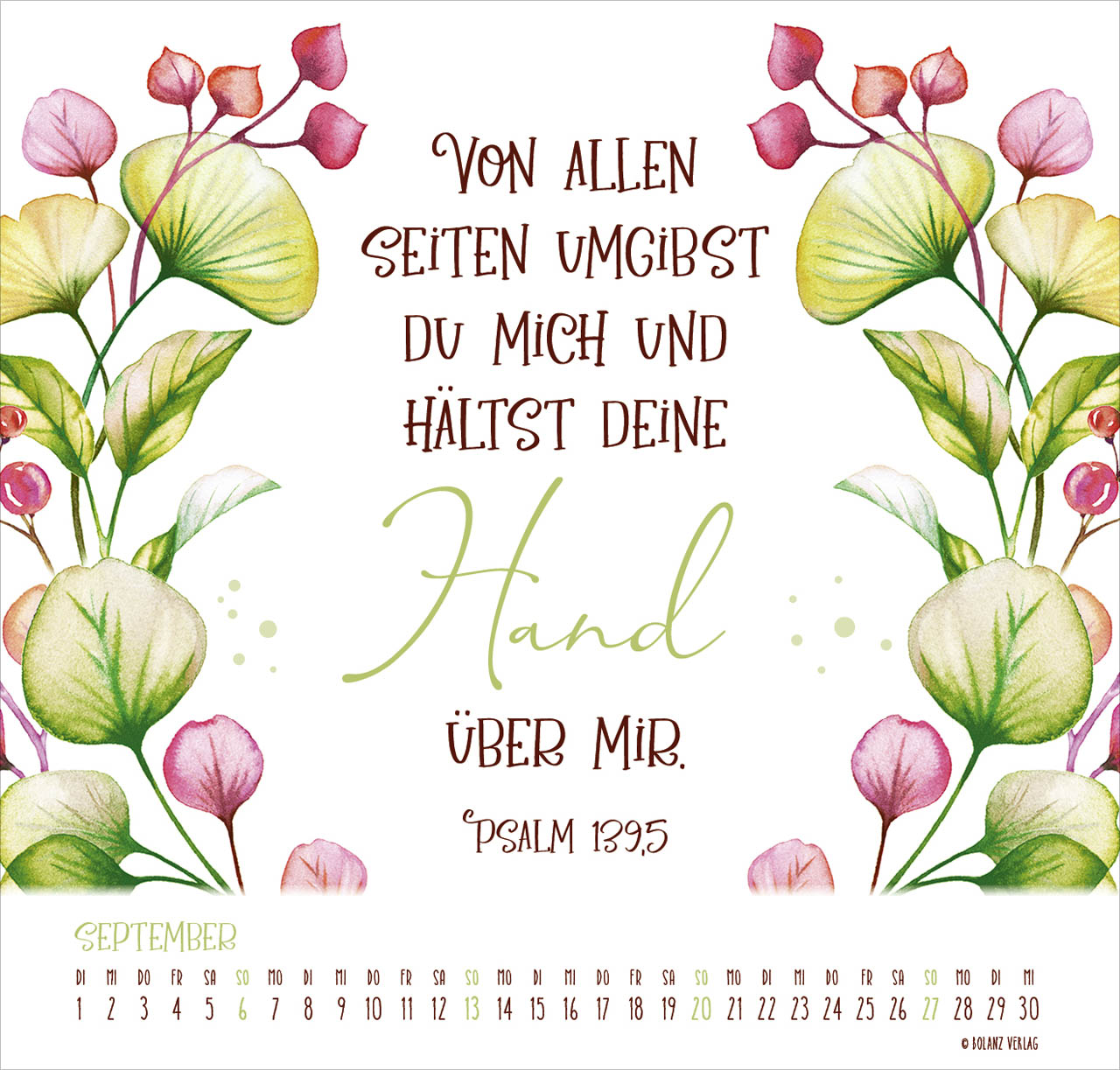 Ein Posterkalender in wunderschönen Farben, mit zarten Mustern und prägnaten Texten. Mit viel Kreativität und Liebe zum Detail gestaltet.