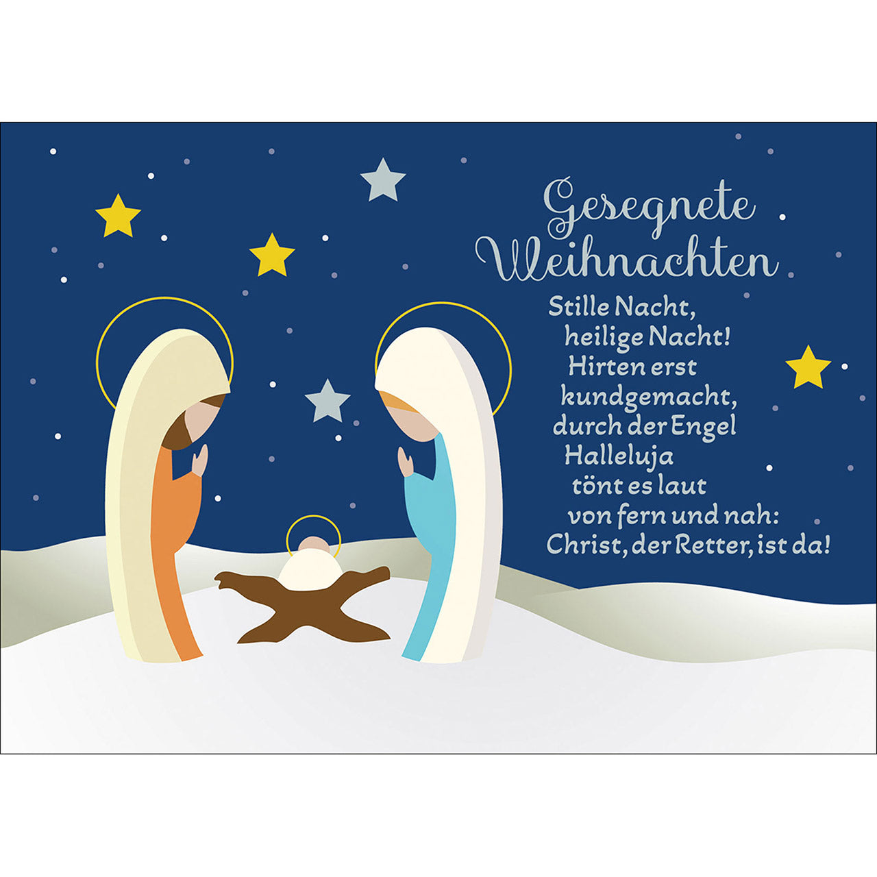 Stille Nacht, heilige Nacht! Hirten erst kundgemacht, durch der Engel Halleluja tönt es laut von fern und nah: Christ, der Retter, ist da!
