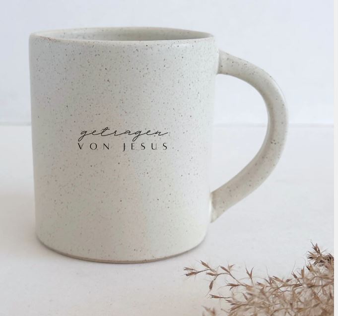 Diese liebevoll handgefertigte Steingut-Tasse mit reaktiver Sesamglasur und der Gravur "Getragen von Jesus" erinnert daran, dass wir in jeder Lebenslage auf seine Kraft vertrauen dürfen. Ein stilvoller Begleiter und eine tägliche Ermutigung, sich in Jesu Liebe und Fürsorge geborgen zu wissen.