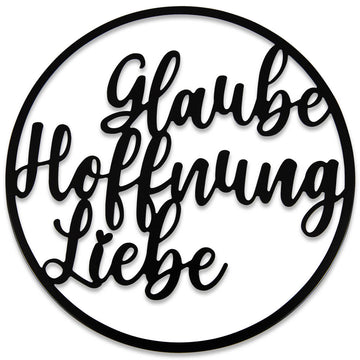 Moderner Wandkreis mit geschwungenem Schriftzug: Glaube Hoffnung Liebe