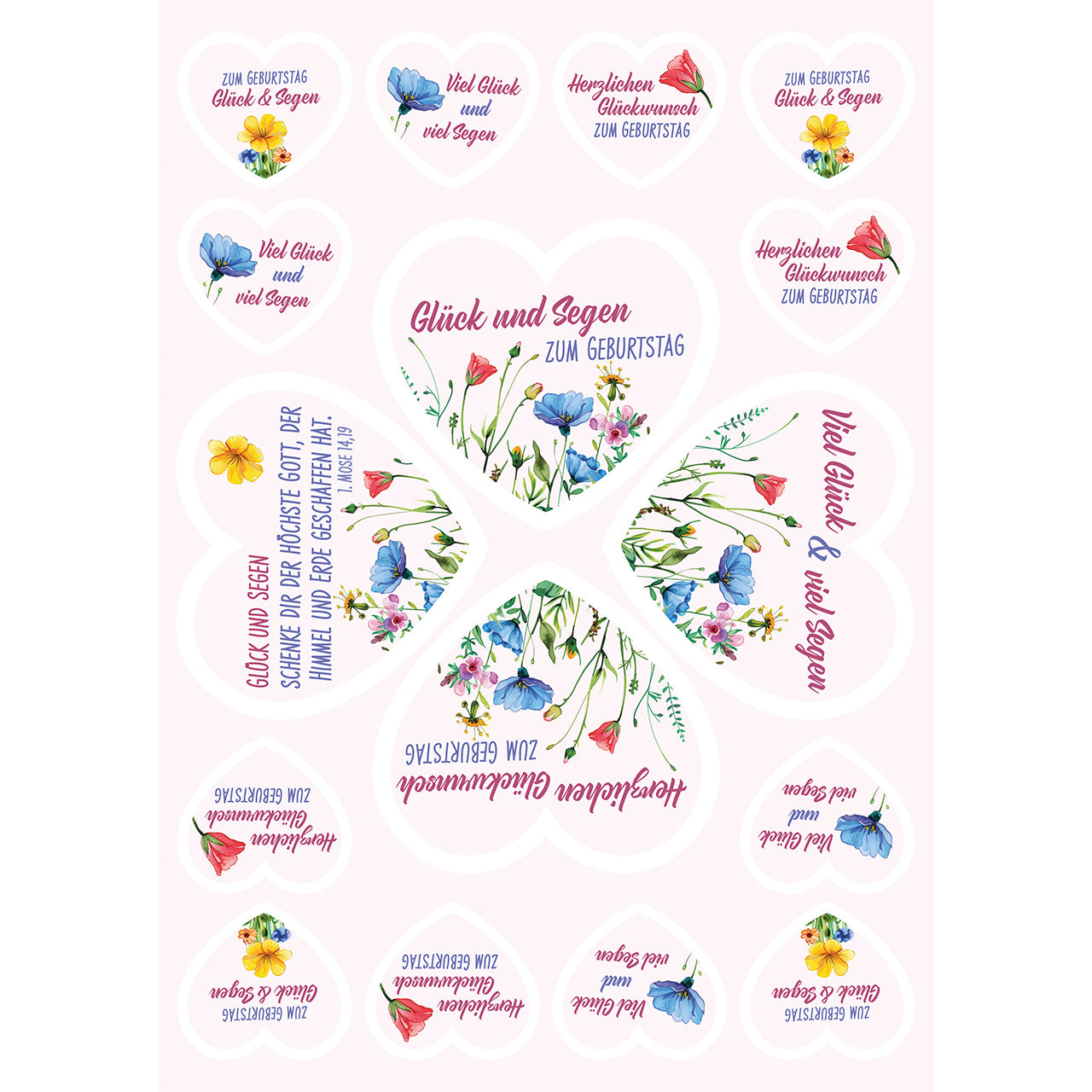 Glück und Segen zum Geburtstag (4 Aufkleber-Grußkarten)