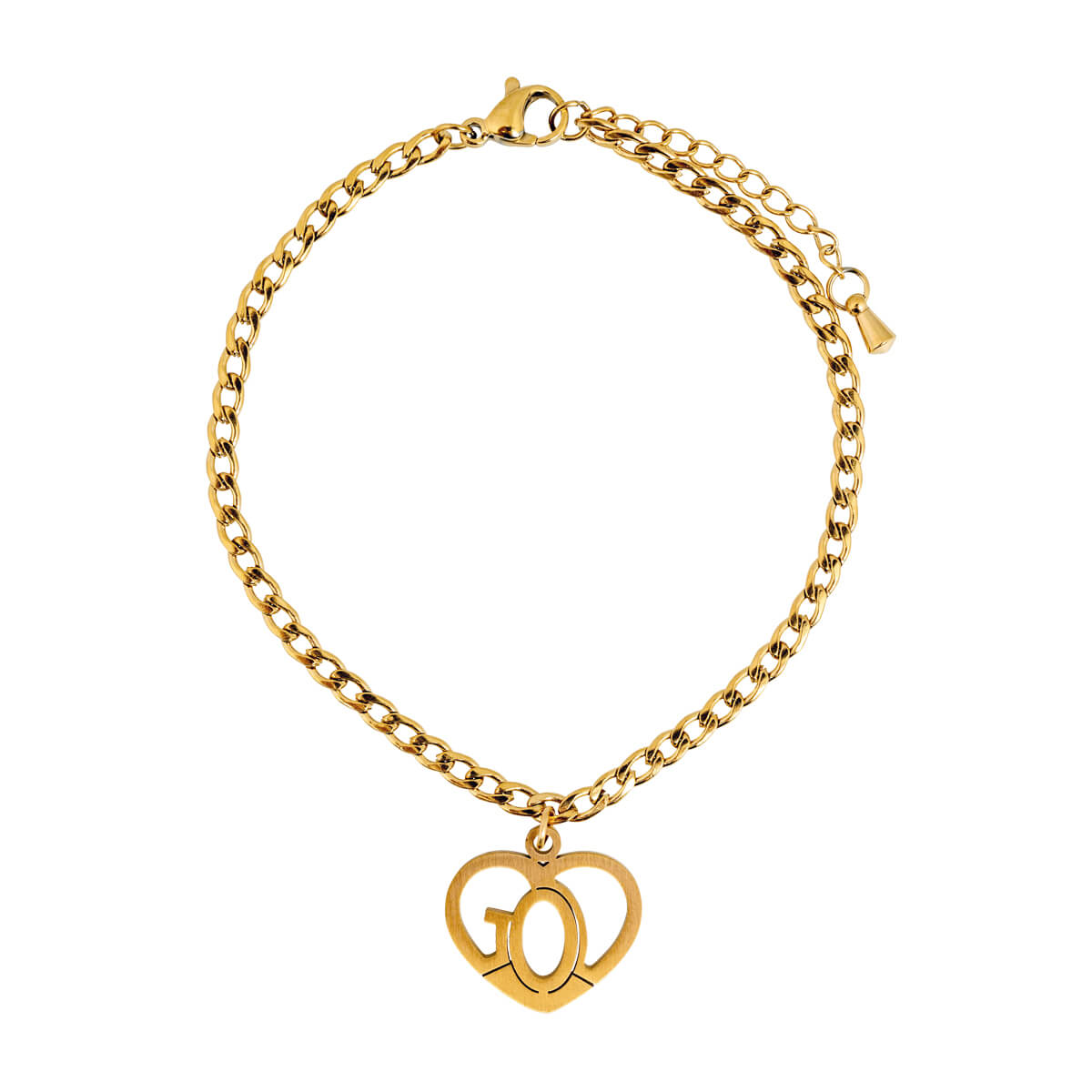 GOD - Armband mit Herz-Anhänger aus Edelstahl (goldfarben)
