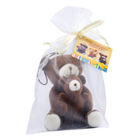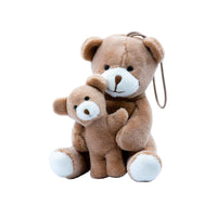 Der große Teddy hält liebevoll den kleinen Bären im Arm, begleitet von der Botschaft "Gott behüte DICH" auf dem Schmuckkärtchen. Mit Schlaufe zur einfachen Befestigung z. B. am Rucksack.
