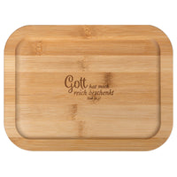 Schicke Lunchbox mit der Gravur "Gott hat mich reich beschenkt - Hiob 36,31" aus hochwertigem Borosilikatglas, die hohen Temperaturunterschieden standhält. Mit einem Bambus-Deckel, der dank der Silikonkante an der Unterseite perfekt schließt. Damit kann der Inhalt luftdicht gelagert werden und die Lunchbox ist somit auch als Frischebox geeignet. Inkl. elastischem Verschlussband.