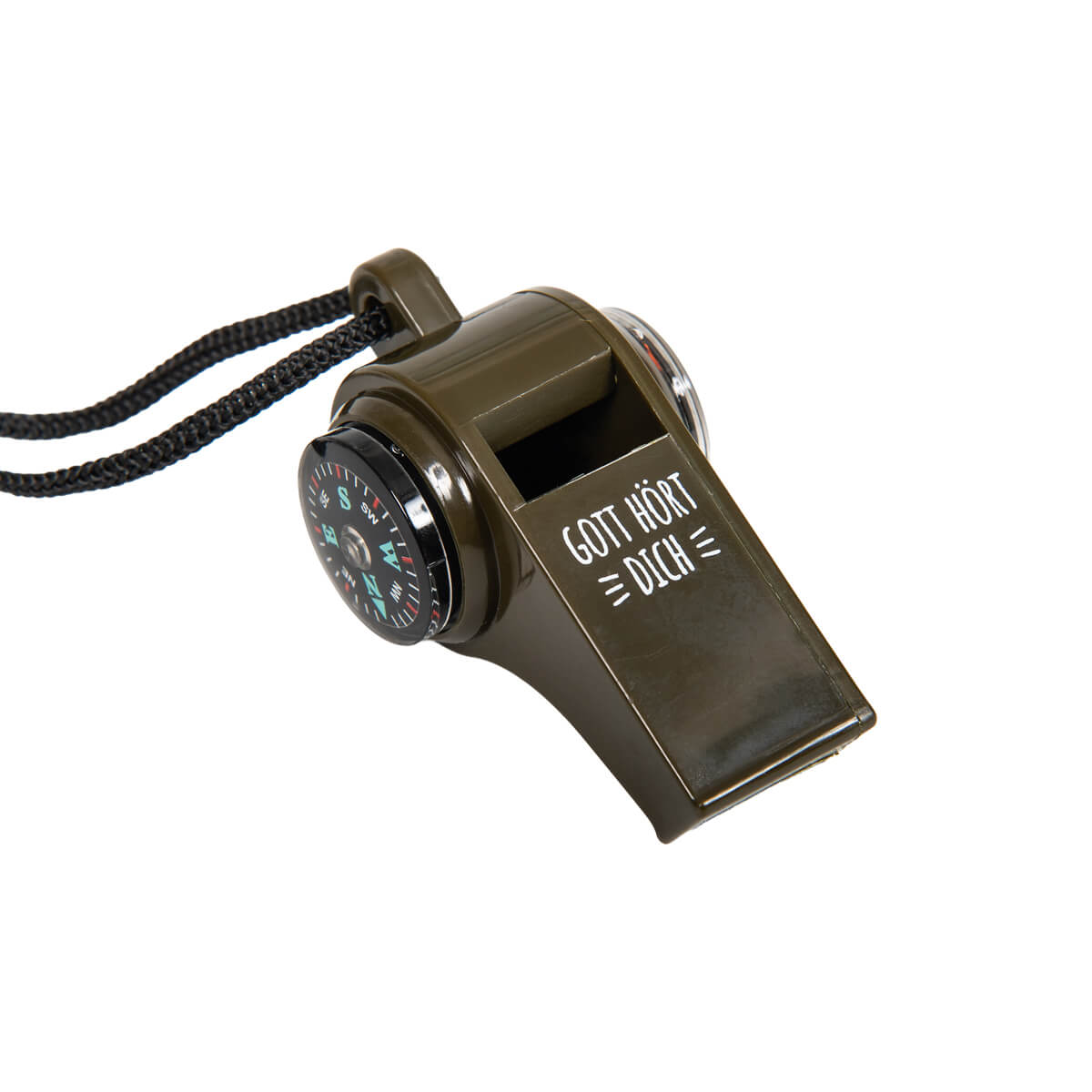 Gott hört dich - Pfeife mit Kompass und Thermometer