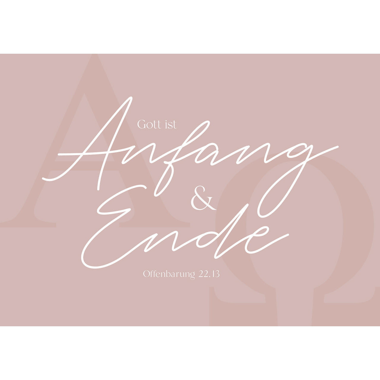 Text auf der Rückseite: Ich bin das Alpha und das Omega, der Erste und der Letzte, der Anfang und das Ende.