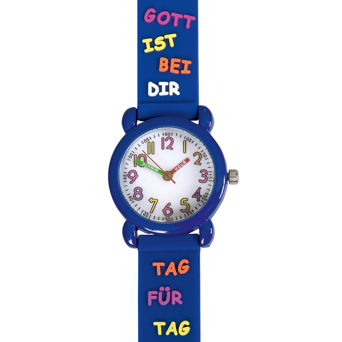 Gott ist bei dir Tag für Tag - Kinder-Armbanduhr blau