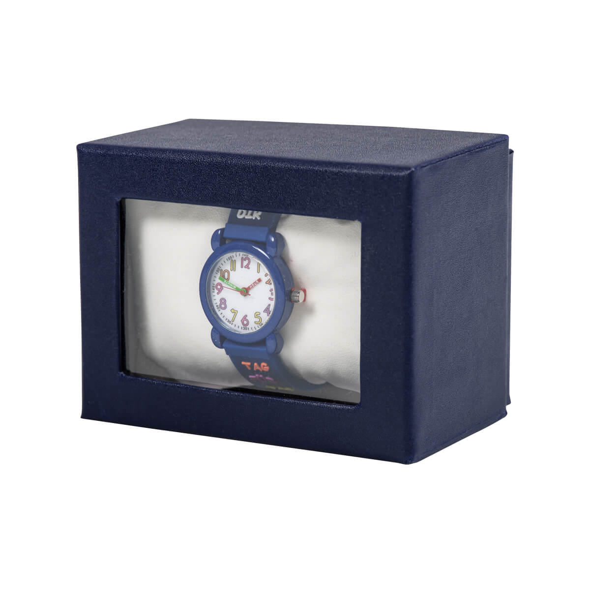 Uhrzeiten lernen fällt Kindern mit dieser hübschen blauen Armbanduhr sicher leichter, denn die Ziffern wechseln sich farblich ab. Stunden- und Minutenzeiger haben ebenfalls unterschiedliche Farben.
