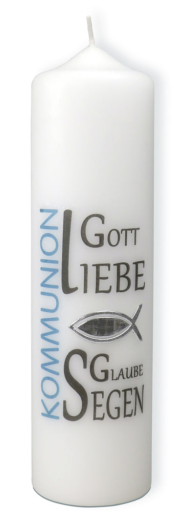 Gott, Liebe, Glaube, Segen - Kerze zur Kommunion (blau)