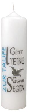 Gott, Liebe, Glaube, Segen - Taufkerze (blau)