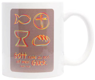 Gott nahe zu sein ist mein Glück (Tasse weiß) Motiv Symbole