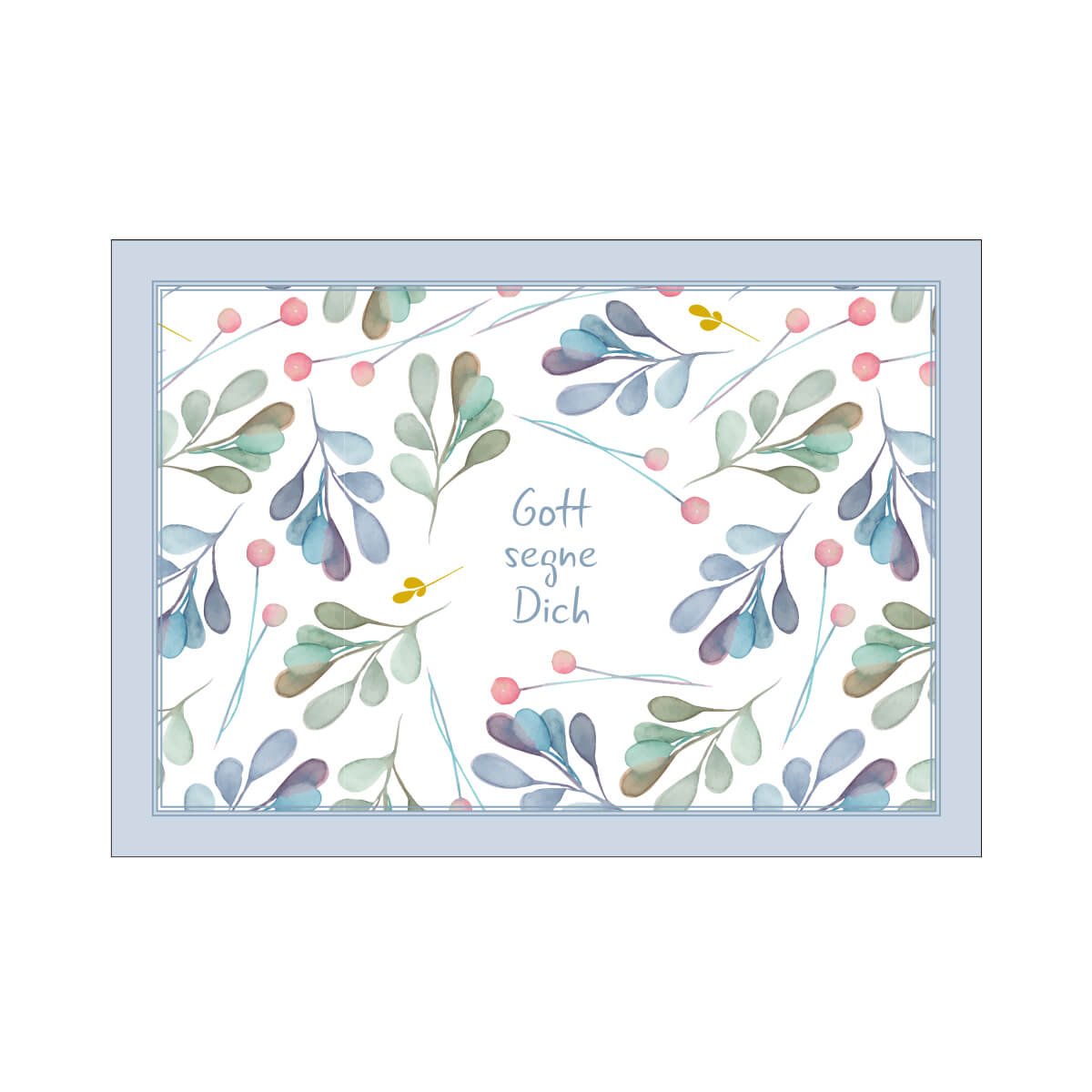Für kleine Grüße oder als Mini-Poster: Postkarte im Blätter-Design "Gott segne Dich" auf stabilem Postkartenkarton mit edler partieller Lackierung.