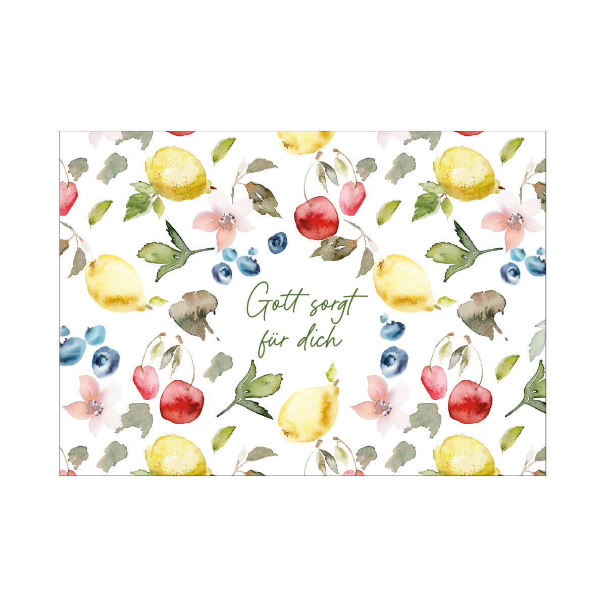 Die Postkarte mit dem Text Gott sorgt für dich eignet sich gut zum Verteilen / Versenden oder als Deko im Kartenhalter.