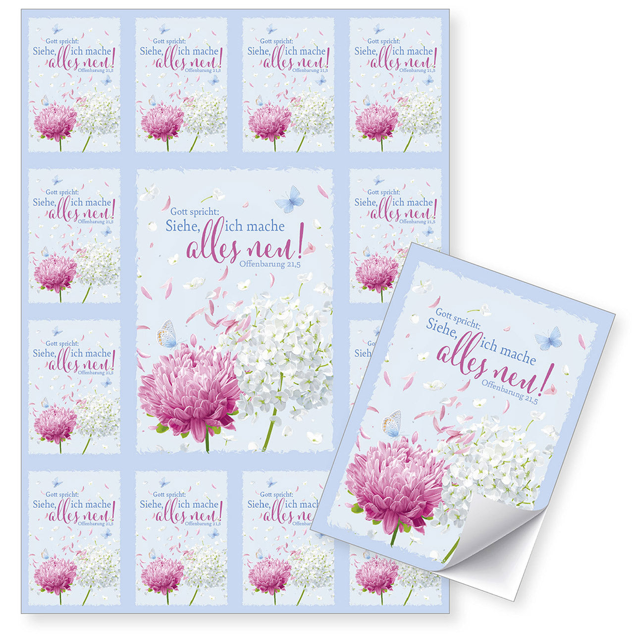 Gott spricht: Siehe, ich mache alles... - Grafik-Motiv (12 Aufkleber-Grußkarten)