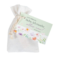 Praktisch und schön verpackt im Baumwollsäckchen mit Grußkärtchen.