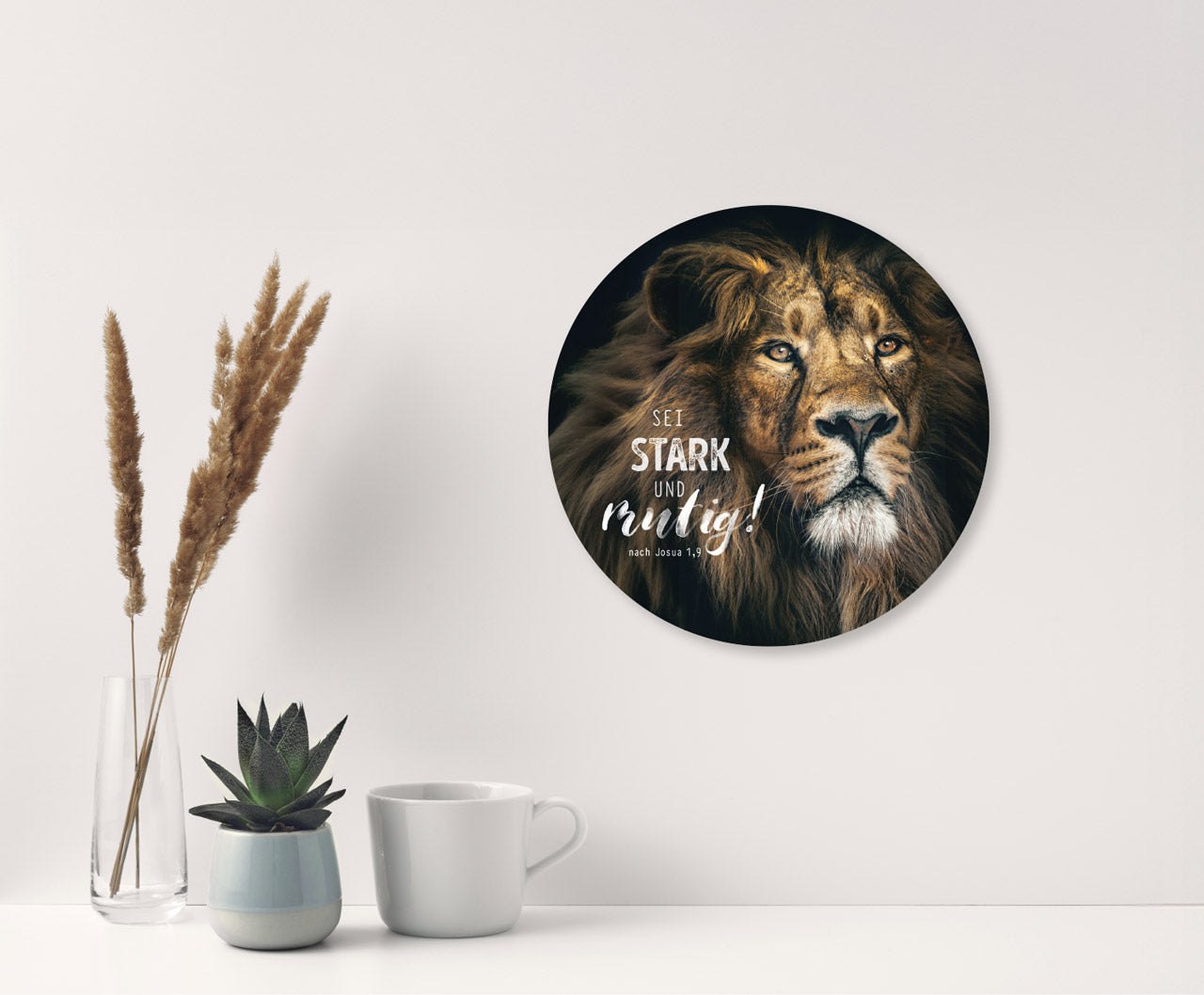 Dieses runde Wandschmuckbild ( 25 cm) aus hochwertigem, stabilem Hartschaumplastik bringt mutmachende Kraft in deine vier Wände. Dank des praktischen Aufhängers ist es im Handumdrehen montiert - ideal für Wohnzimmer, Büro, Gemeinde oder Jugendzimmer.