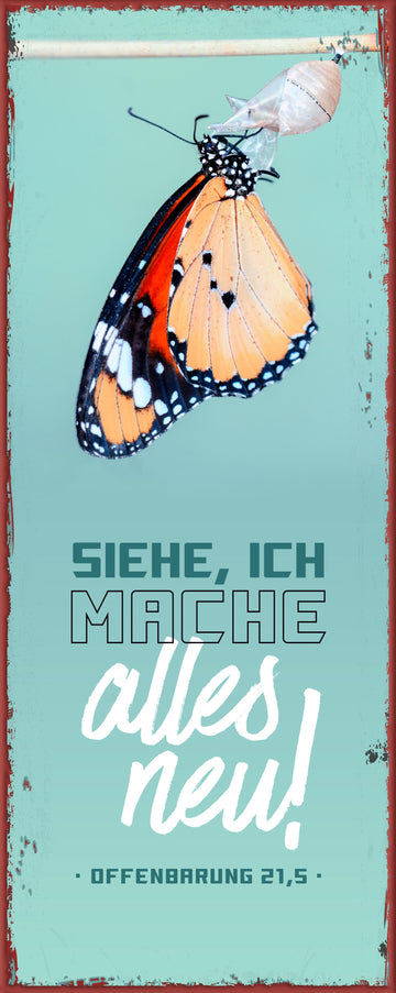 Gott spricht: Siehe, ich mache alles neu - Motiv Schmetterling (Metallschild)