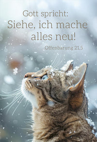 - Katze im Schnee: Eine niedliche Katze, die erwartungsvoll den Schneeflocken entgegenblickt - ein Symbol für Hoffnung und Neuanfang.