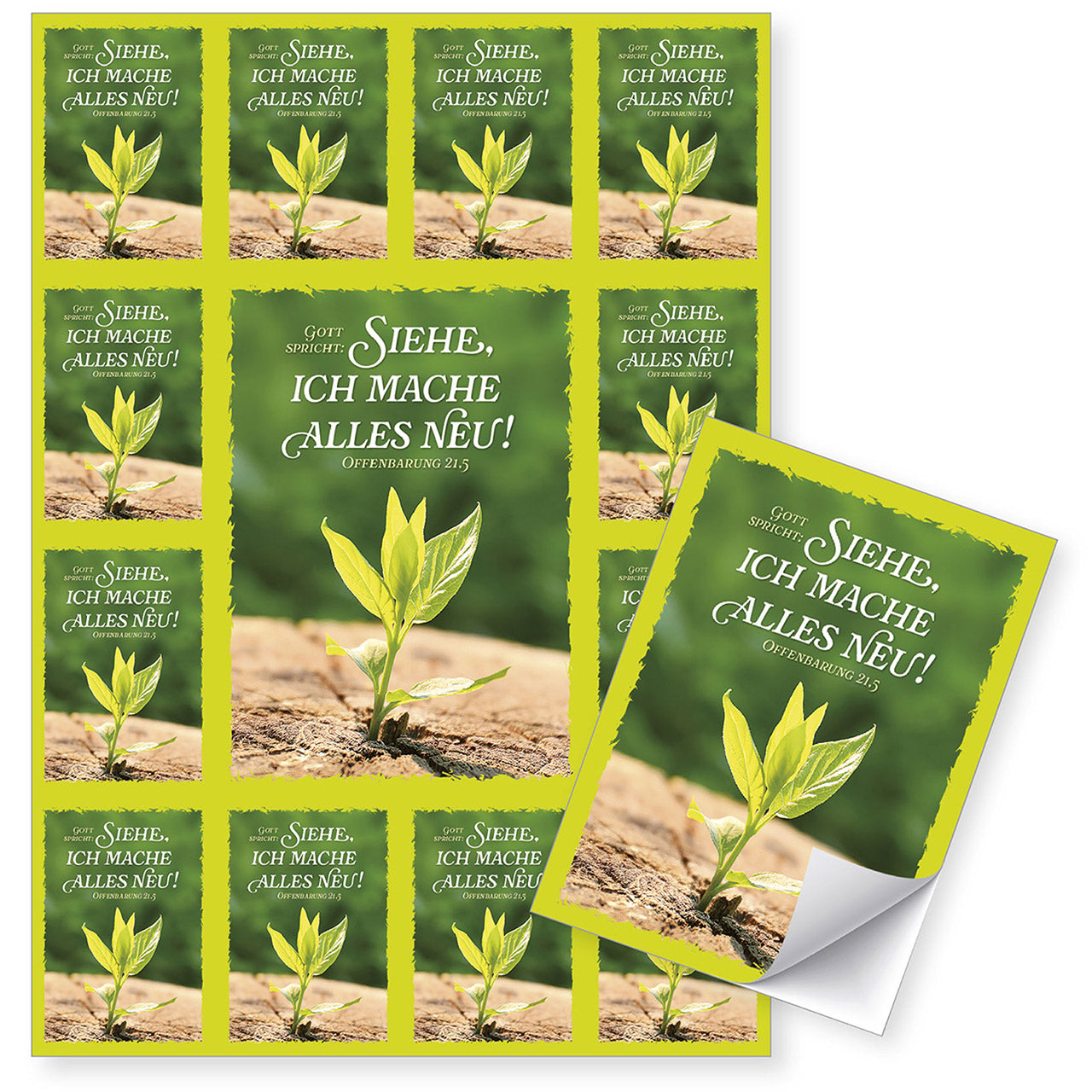 Gott spricht: Siehe, ich mache alles neu - Top-Motiv (12 Aufkleber-Grußkarten)