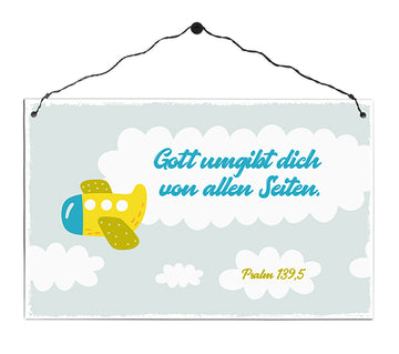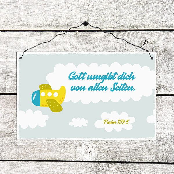 Gott umgibt dich von allen Seiten - Flugzeug (Holzschild)