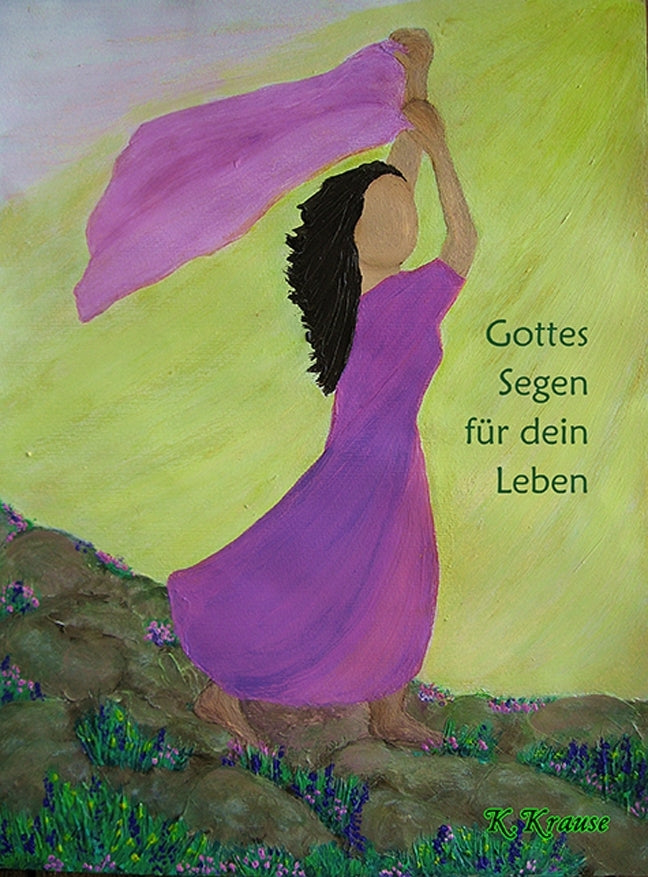 Kornelia Krause Gottes Segen für dein Leben (Falttextkarte von Kornelia Krause) Motiv: Gottes Segen für dein Leben. Jede Faltkarte hochwertig gedruckt rückseitiger Texteindruck, Briefumschlag. Verpackt in Folienhülle. Format 120 mm x 166 mm. Text auf Rückseite: Möge die Freude deine Seele umspielen wie der Wind und die Sonne. Mögen deine Entscheidungen sicher sein wie die Schritte deiner Füße festem Boden. Mögen deine Augen den Himmel im Blick behalten und die Blumen auf deinem Weg nicht übersehen. Kornelia Krause Faltkarte 52 90207