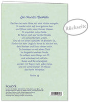 Die Grußkarte zur Geburt mit bedeutungsvollem Bibelwort unterstreicht die große Freude darüber, einen neuen, einzigartigen Menschen auf dieser Erde willkommen heißen zu dürfen.