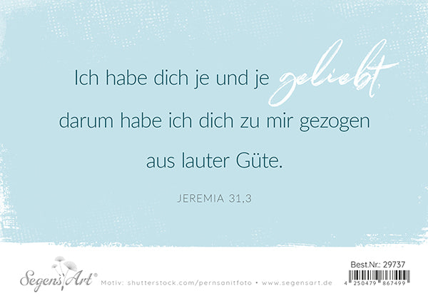 Ich habe dich je und je geliebt, darum habe ich dich zu mir gezogen aus lauter Güte. Jeremia 31,3