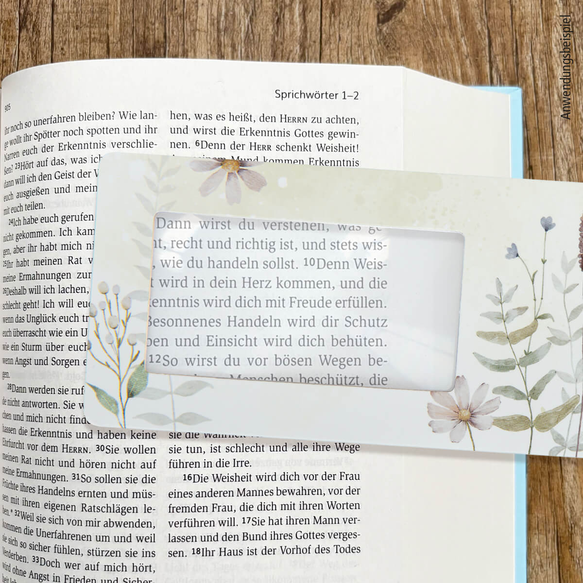 Bei dem praktischen großen Lesezeichen aus stabilem Papier lassen sich dank integrierter Lupe mit 3-fach Vergrößerung kleine Texte gut lesen.