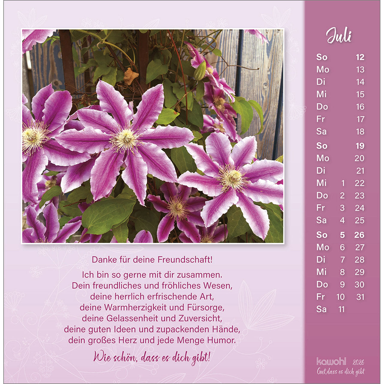 Mit diesem Kalender sagt man lieben Menschen ein "Ich mag dich" und zeigt damit ein ganzes Jahr lang eine herzliche Verbundenheit.