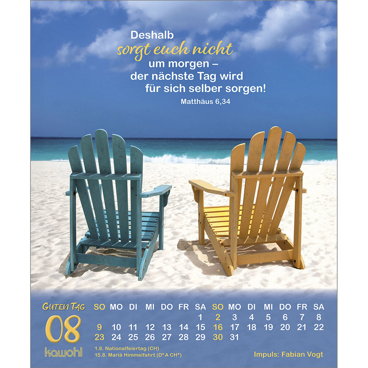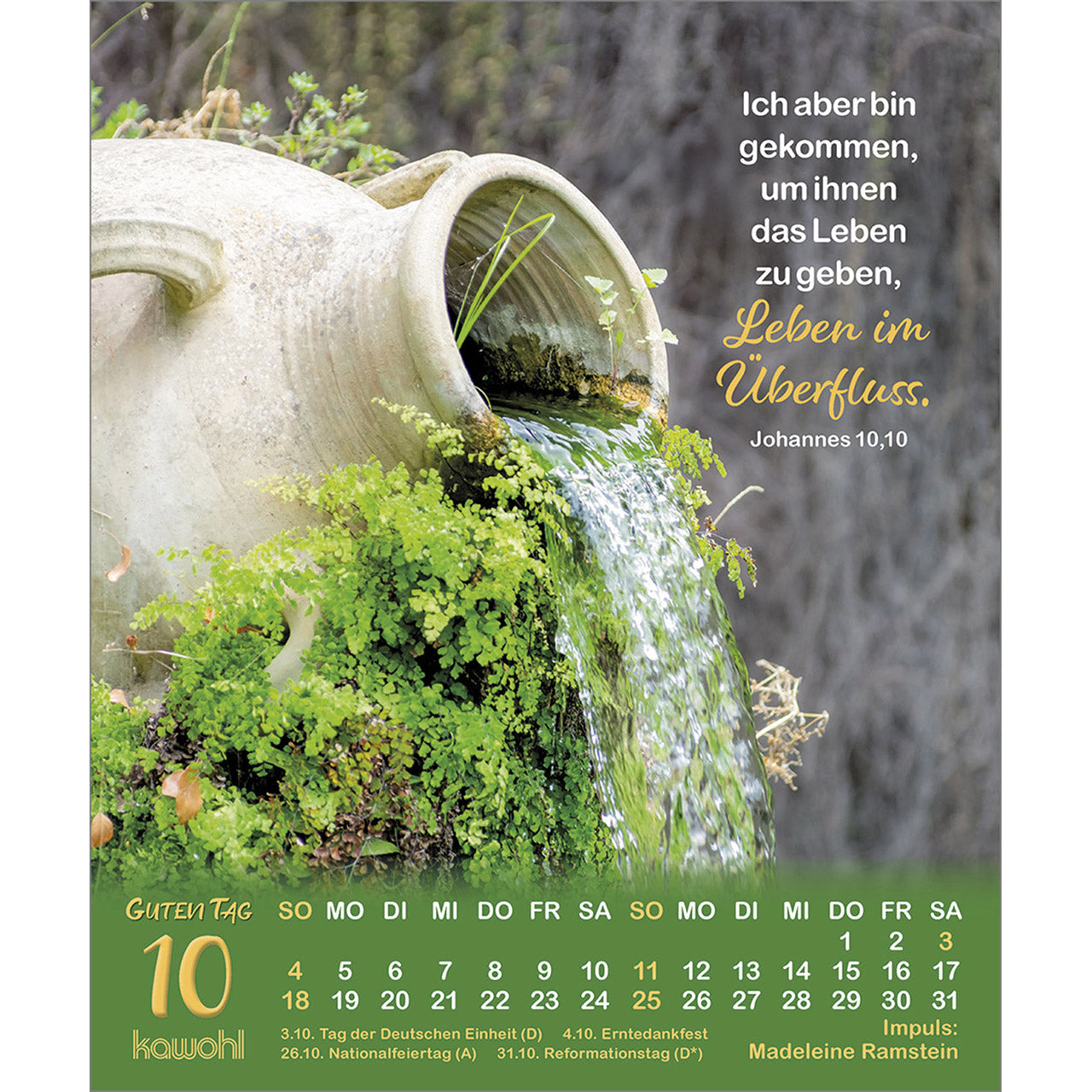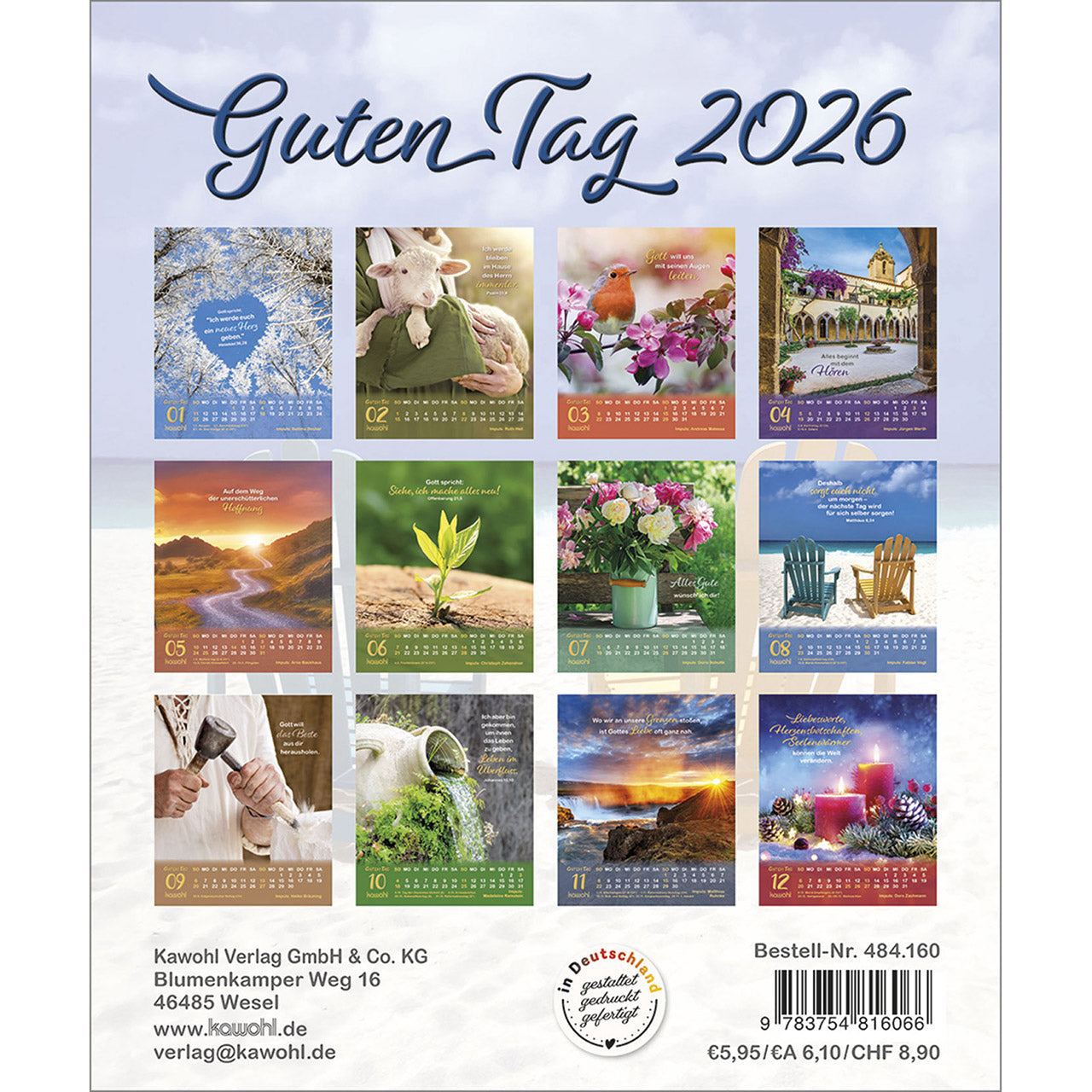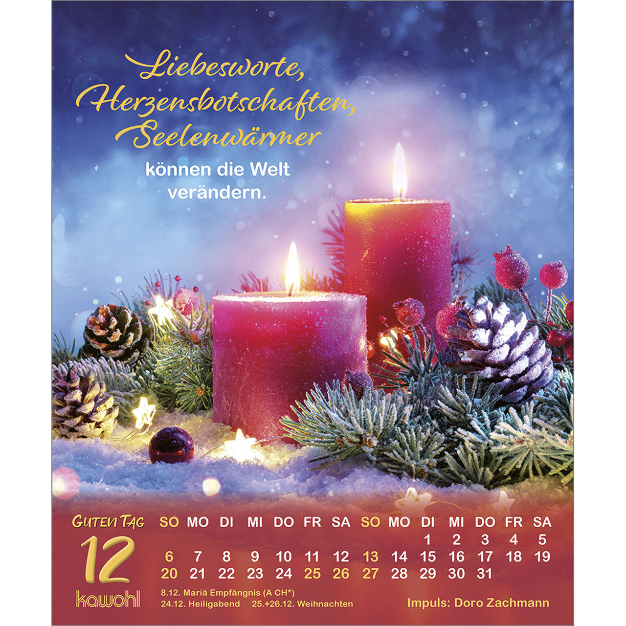 Dieser erfrischende (Verteil-)Kalender mit Langzeitwirkung überzeugt durch prägnante Bilder und erfrischende Beiträge von beliebten Autoren.