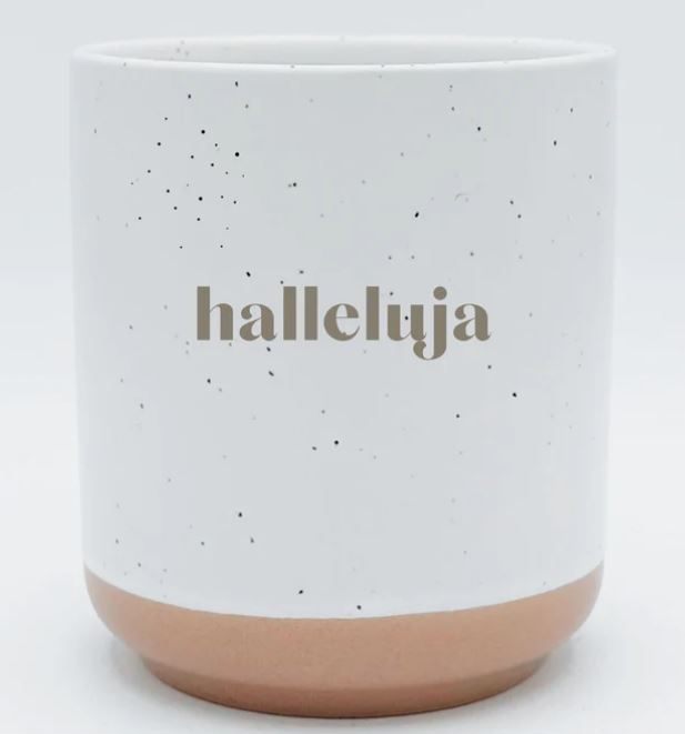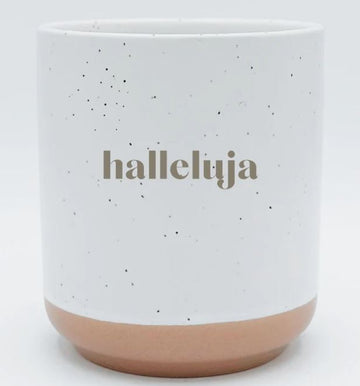 Entdecke unseren handgemachten Steingut-Becher mit der Gravur "Halleluja".