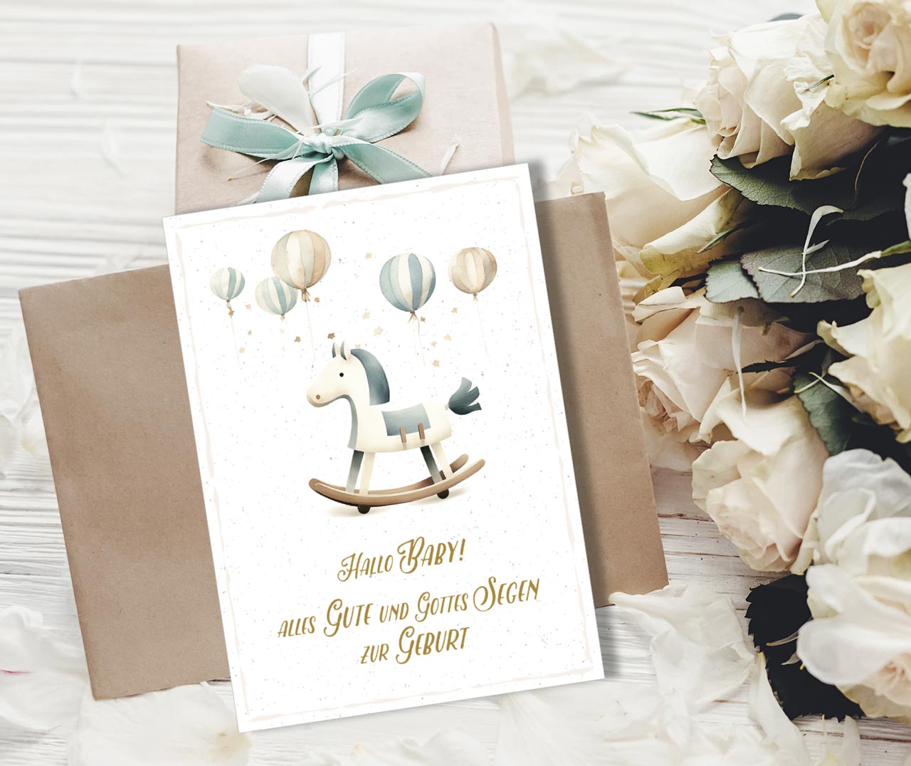 Hallo Baby - Alles Gute und Gottes Segen zur Geburt (Faltkarte Geburt)