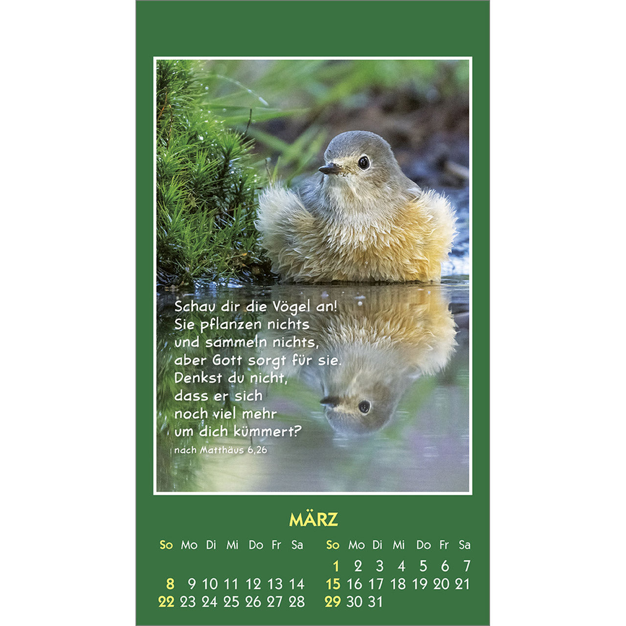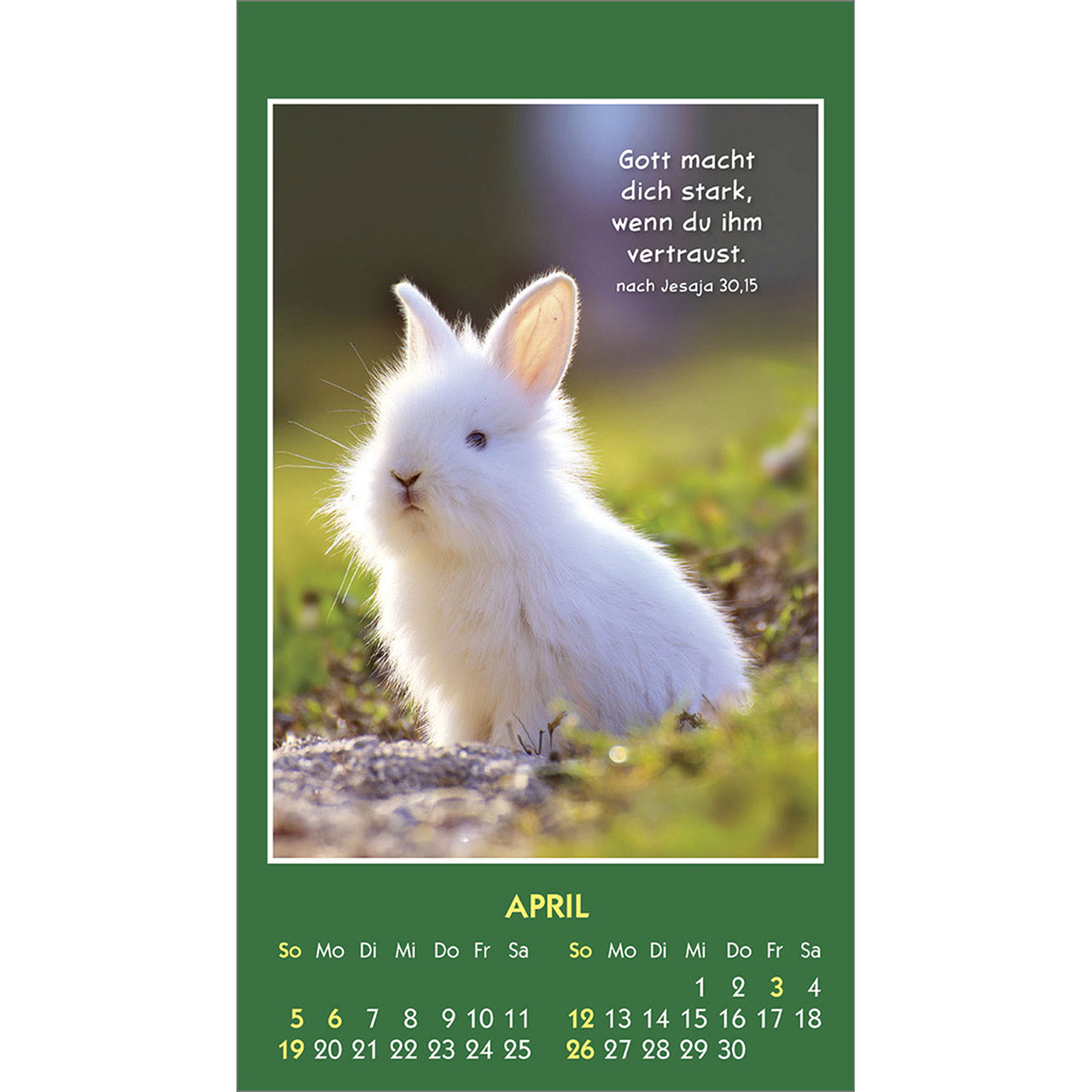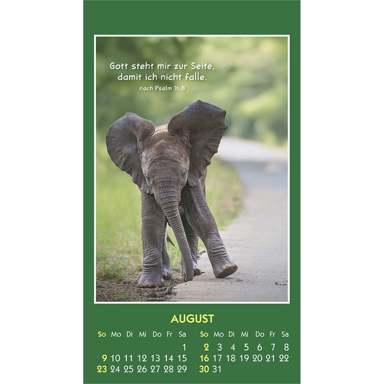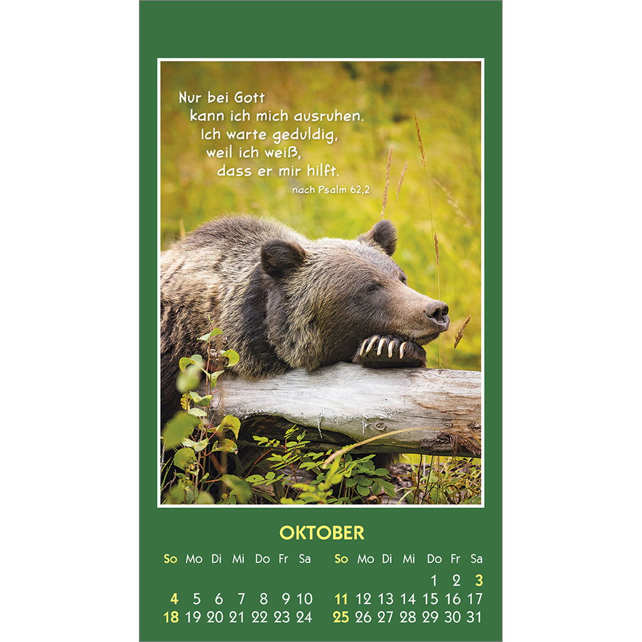 Kalender mit exzellenten Tierfotos und wegweisenden Bibelworten sind schöne Mitbringsel. Ebenfalls hervorragend geeignet als wertiges Geschenk in Sonntagsschule, Kindergottesdienst und Kindergarten.