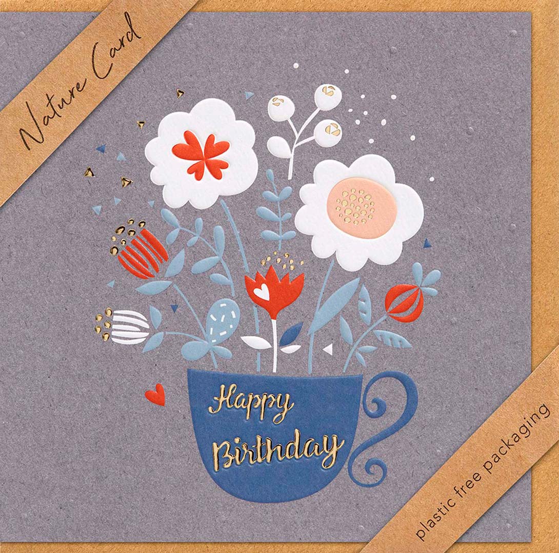 Happy Birthday! - Motiv Blumen in Tasse (Faltkarte Geburtstag)