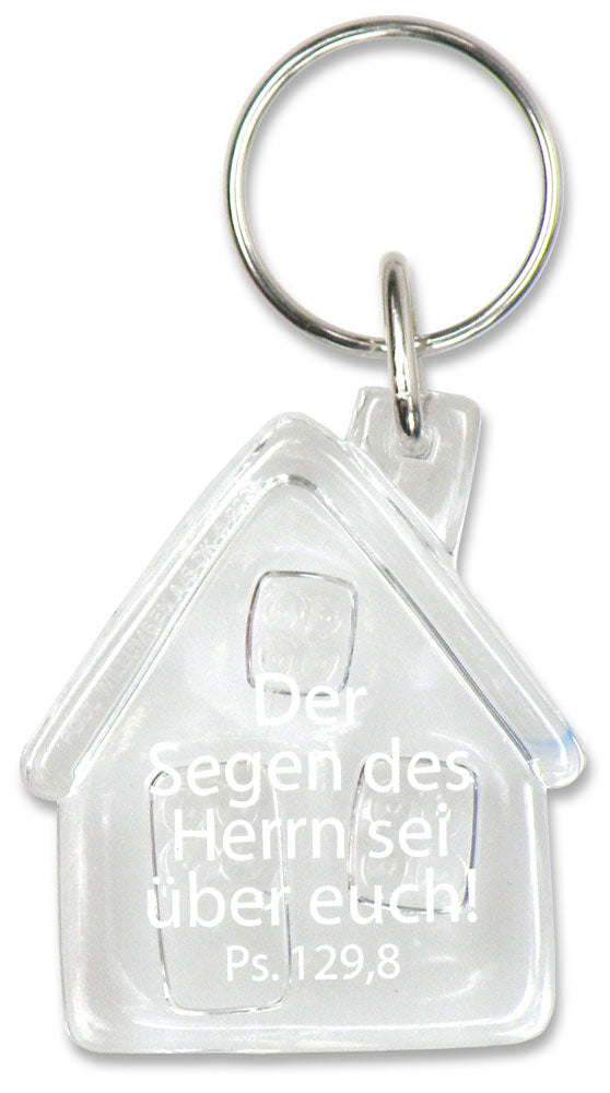Haus - Der Segen des Herrn sei über euch - Schlüsselanhänger (weiß)