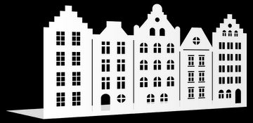 Große Häuserzeile aus Metall für Kerzen oder Windlichter - eine zeitlos schöne Dekomöglichkeit, Metall, weiß, 32 x 17 x 6,5 cm